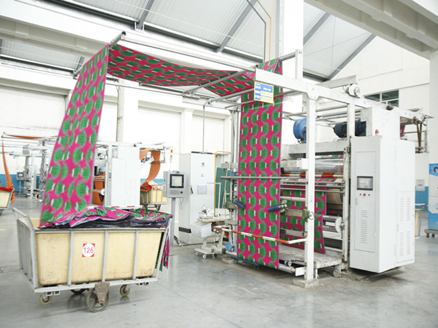 華紡股份有限公司花布公司是公司印染主導(dǎo)產(chǎn)業(yè)板塊的重要組成部分,集印花面料的設(shè)計、印制、后整及銷售于一體,擁有進(jìn)口齊瑪20套色圓網(wǎng)印花機(jī),由高效配套的水洗機(jī)、退漿機(jī)、雙面印花機(jī)、絲光機(jī)、蒸化機(jī)、拉幅機(jī)等裝備組成13條功能先進(jìn)的印花生產(chǎn)線,輔以2條先進(jìn)的自動調(diào)漿系統(tǒng);采用CAD滑行設(shè)計處理系統(tǒng)和先進(jìn)的蘭光制網(wǎng)機(jī)、噴蠟制網(wǎng)機(jī)等,可根據(jù)客戶及市場需求設(shè)計花型,并自主研發(fā)引領(lǐng)時尚潮流的新花型。年產(chǎn)能力12000萬米,產(chǎn)品綜合出口率達(dá)80%以上,其中純棉真蠟印花布、純棉仿蠟印花布等100%外銷出口?;ú脊旧a(chǎn)工藝先進(jìn)、產(chǎn)品質(zhì)量穩(wěn)定,技術(shù)含量高、市場份額大,長期暢銷非洲等數(shù)十個國家和地區(qū),其產(chǎn)品在非洲市場占有重要位置。